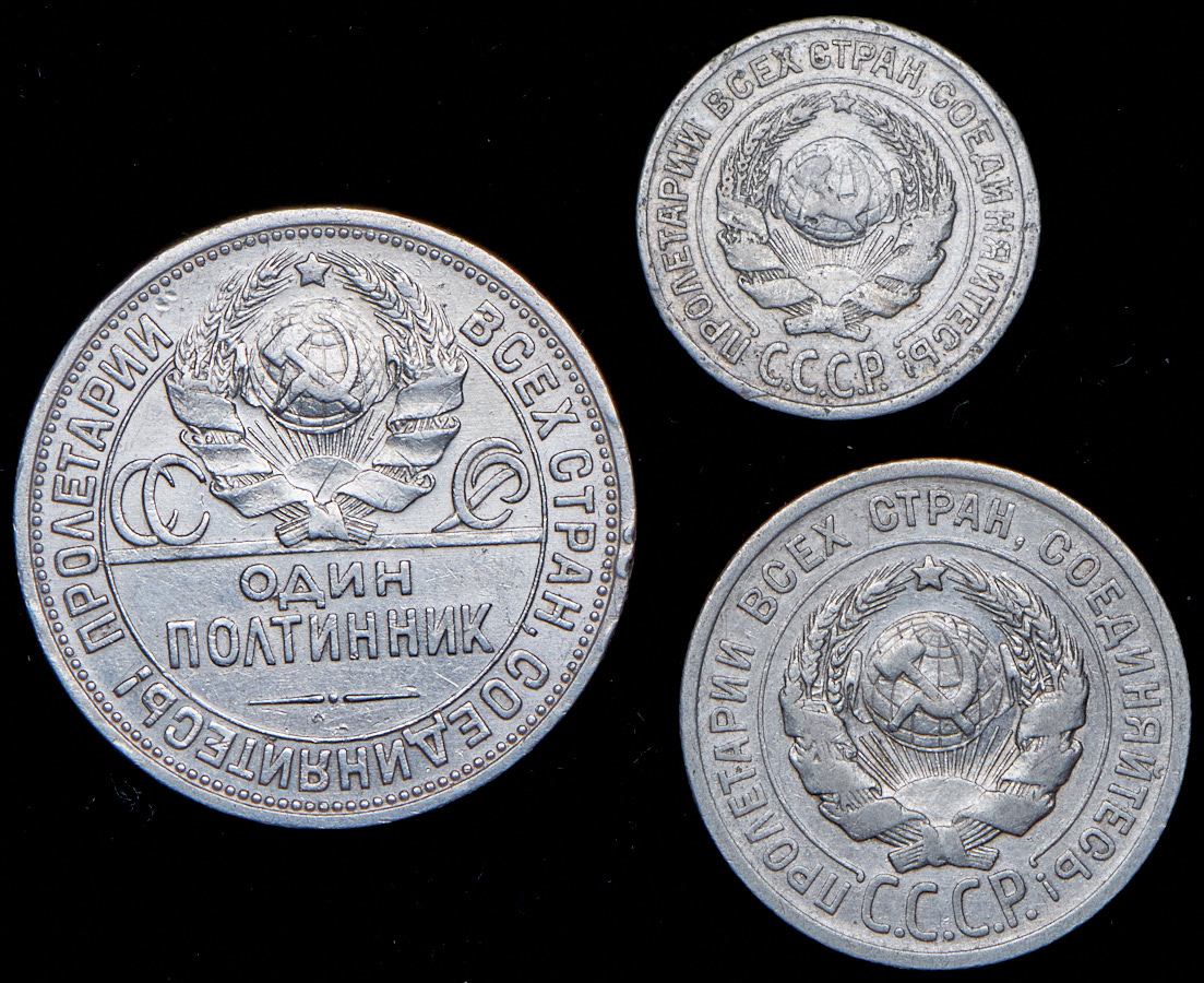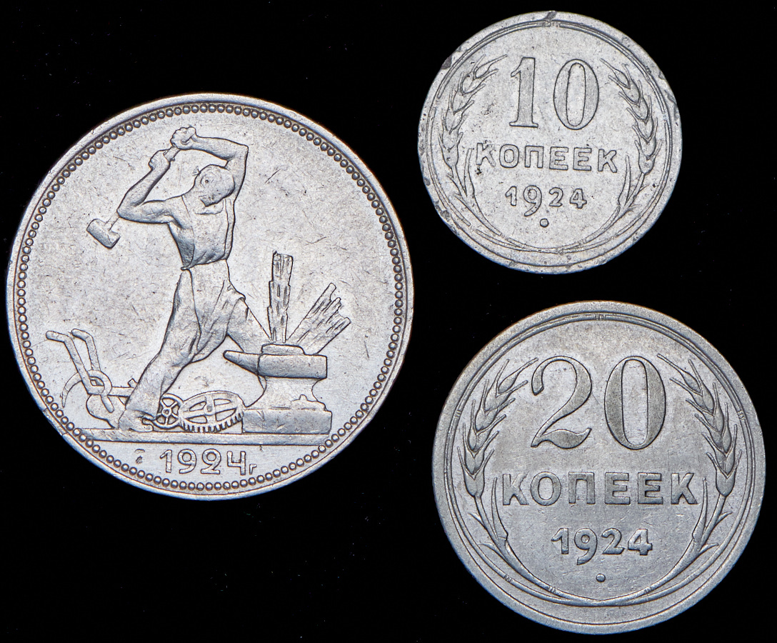 VF-XF. Полтинник (ПЛ), 20 копеек, 10 копеек.