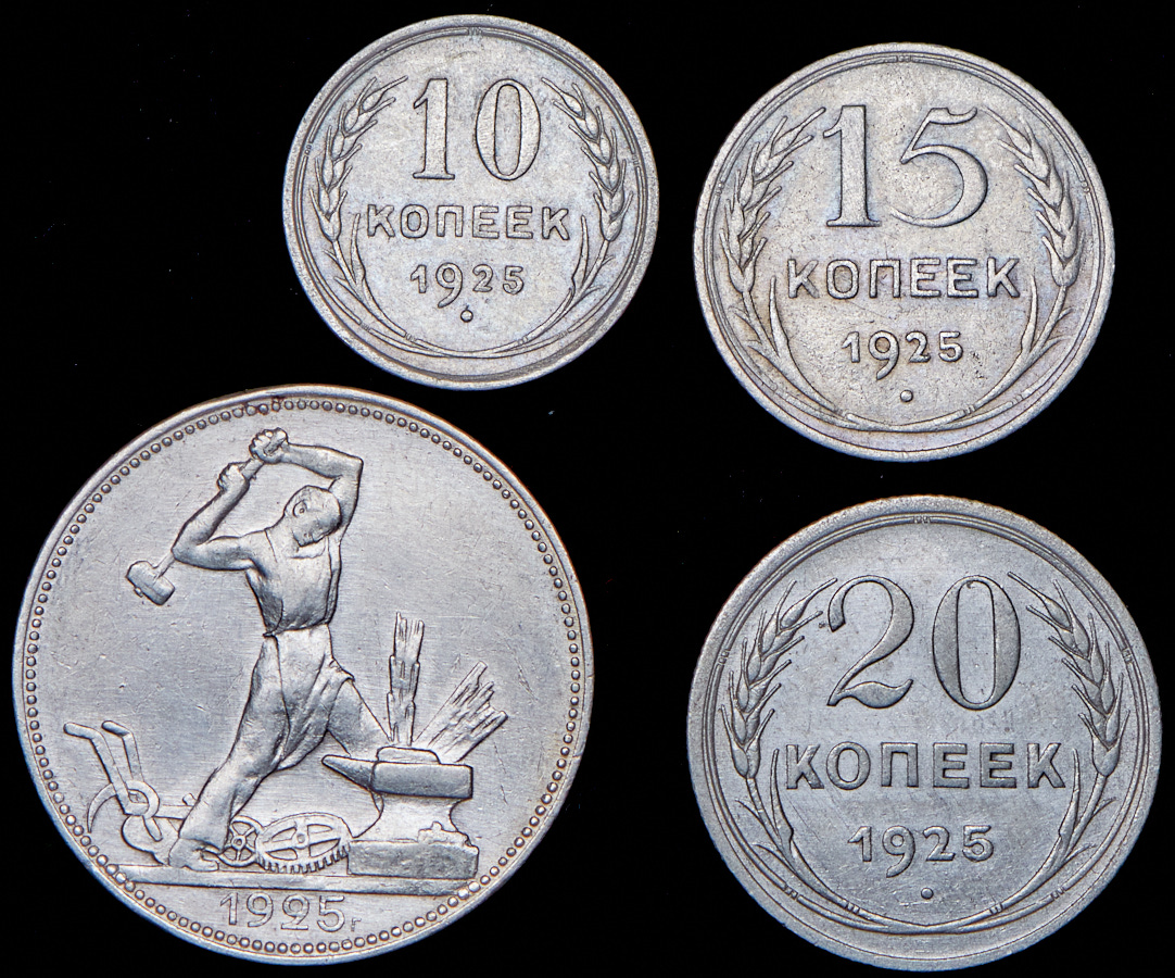 Полтинник (ПЛ), 20 копеек, 15 копеек, 10 копеек.