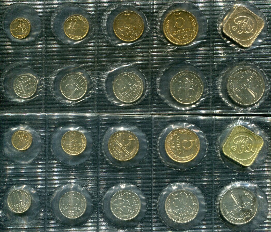 Набор из 2-х годовых наборов 1989-1990 (СССР) (в мяг. запайке) ММД