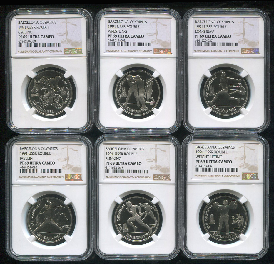 Набор из 6 монет Рубль "Олимпийские игры 1992 года в Барселоне" (в слабах)