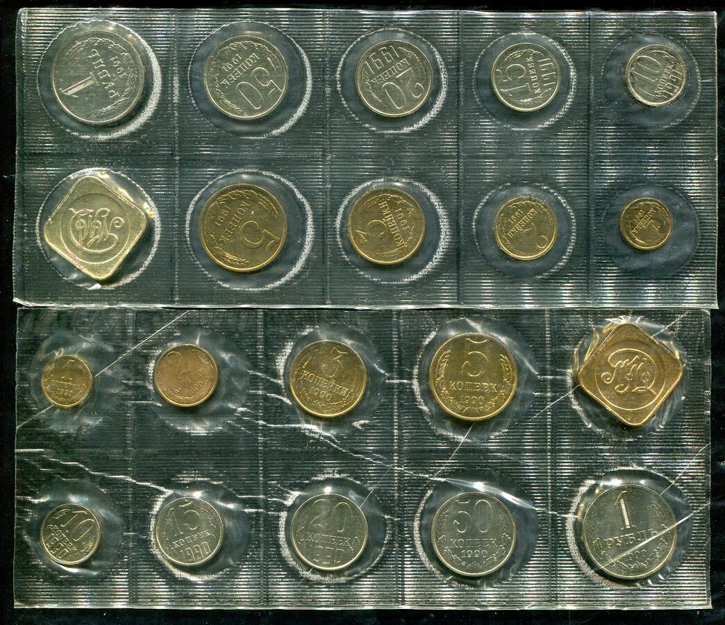 Набор из 2 годовых наборов 1990-1991 (СССР) (в запайках) ММД