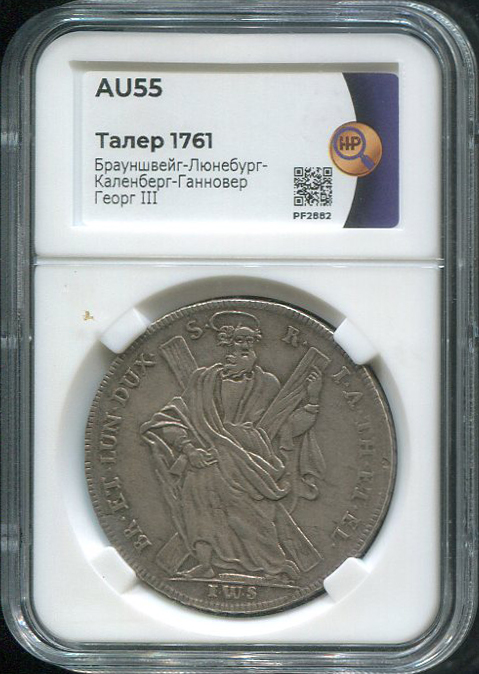Талер 1761 (Брауншвейг-Люнебург-Каленберг-Ганновер) (в слабе)