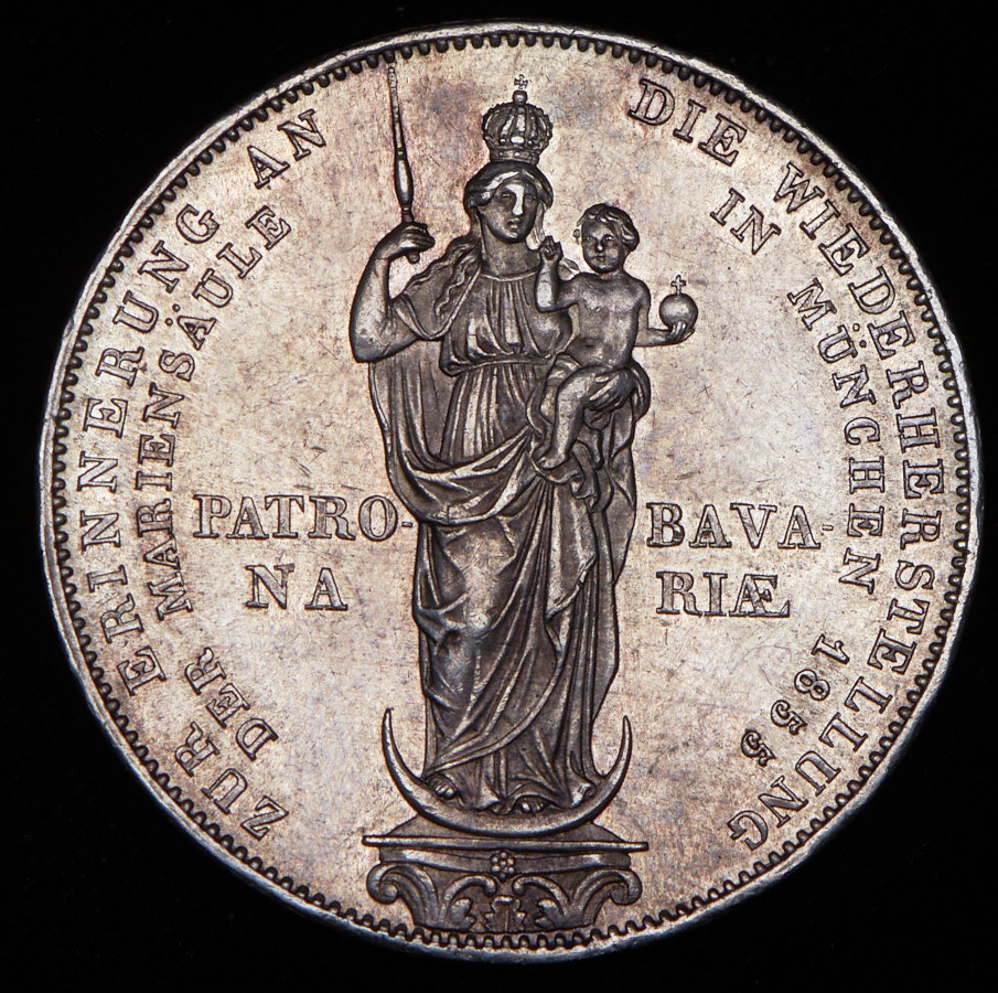 2 гульдена 1855 "Восстановление колонны Мадонны в Мюнхене" (Бавария)