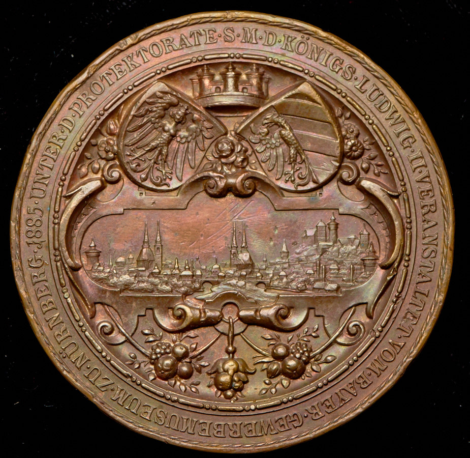 Перевод легенды оборотной стороны: Под покровительством его величества короля Людвига II Баварского Нюрнбергский хозяйственный музей 1885.