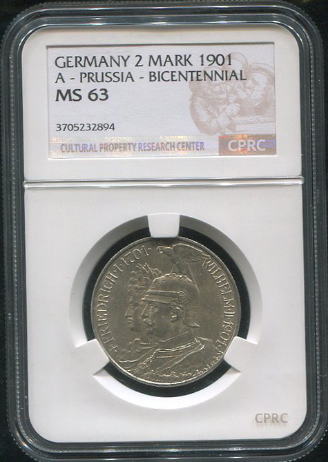 2 марки 1901 "200-летие королевства" (Пруссия) (в слабе)