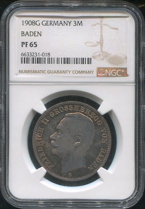 3 марки 1908 (Баден) (в слабе)