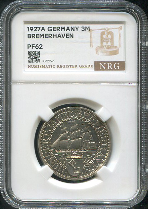 3 марки 1927 "100 лет Бремерхафену" (Германия) (в слабе) А