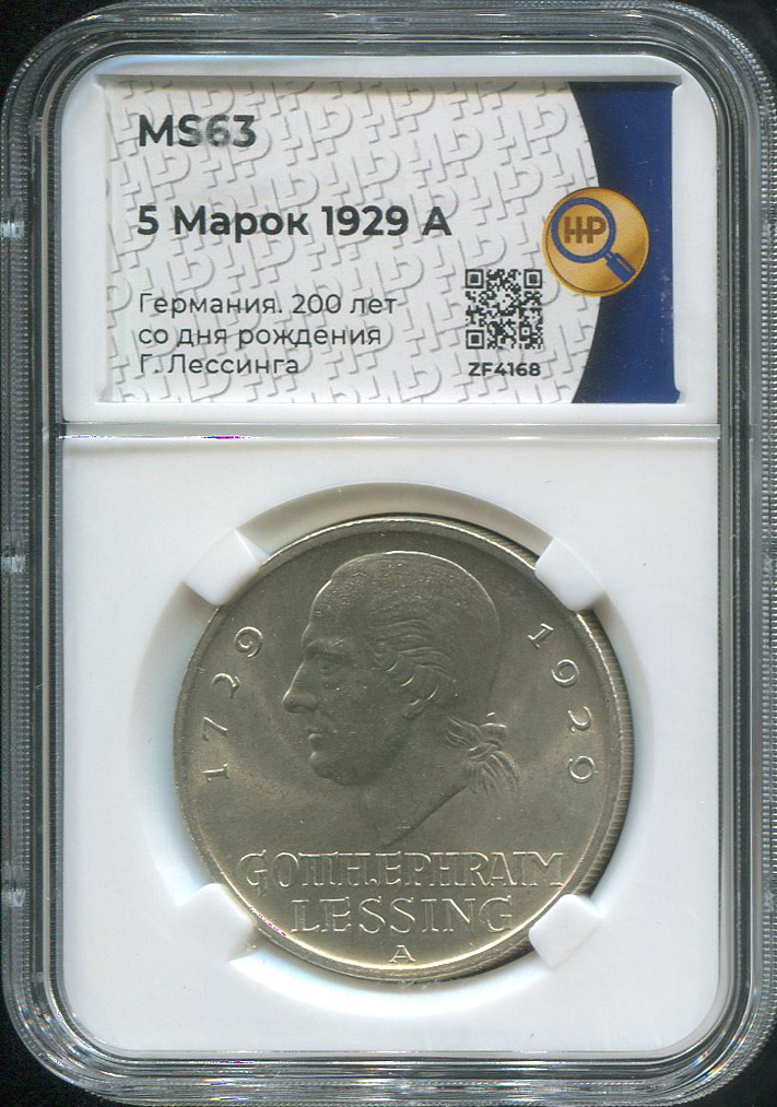 5 марок 1929 "200-летие со дня рождения Лессинга" (Германия) (в слабе) А