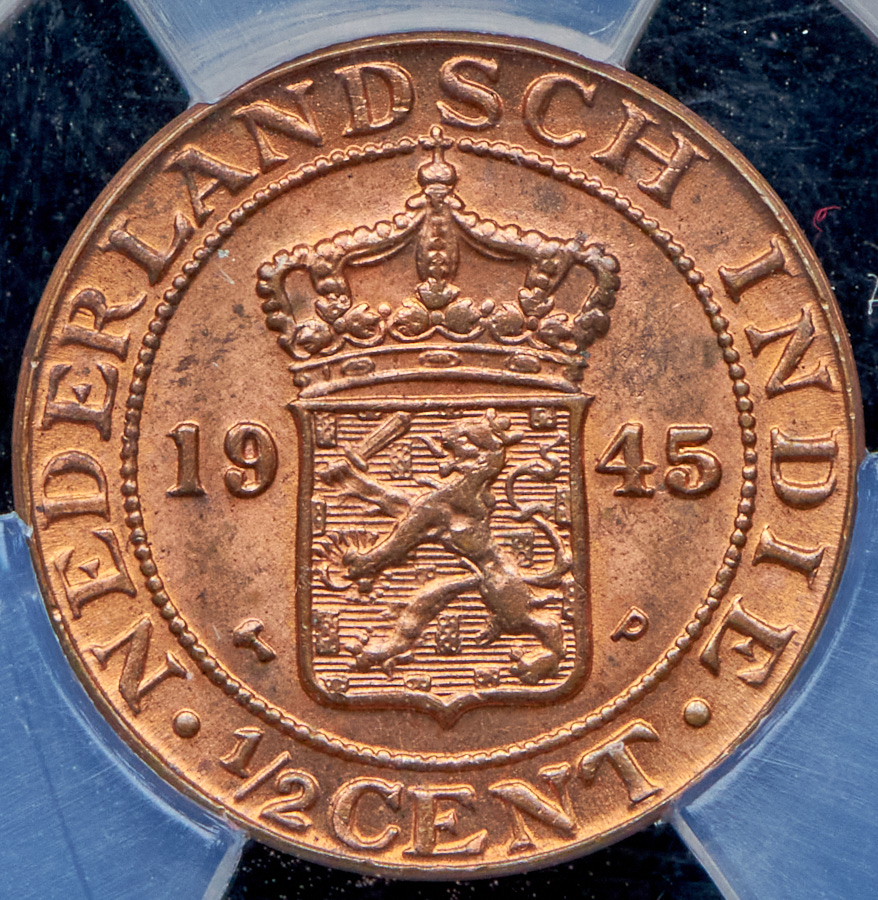 1/2 цента 1945 (Нидерландская Индия) (в слабе)