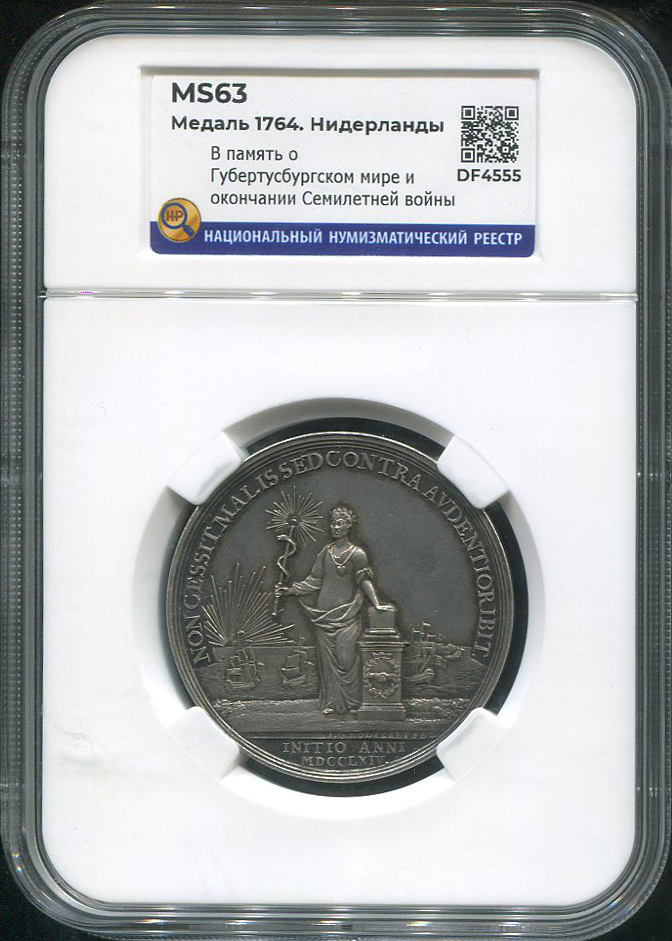 Медаль "В память о Губертусбургском мире и окончании Семилетней войны" 1764 (Нидерланды) (в слабе)