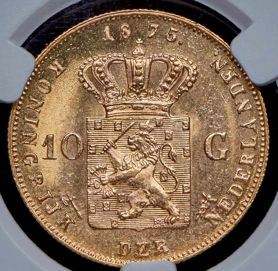 10 гульденов 1875 (Нидерланды) (в слабе)