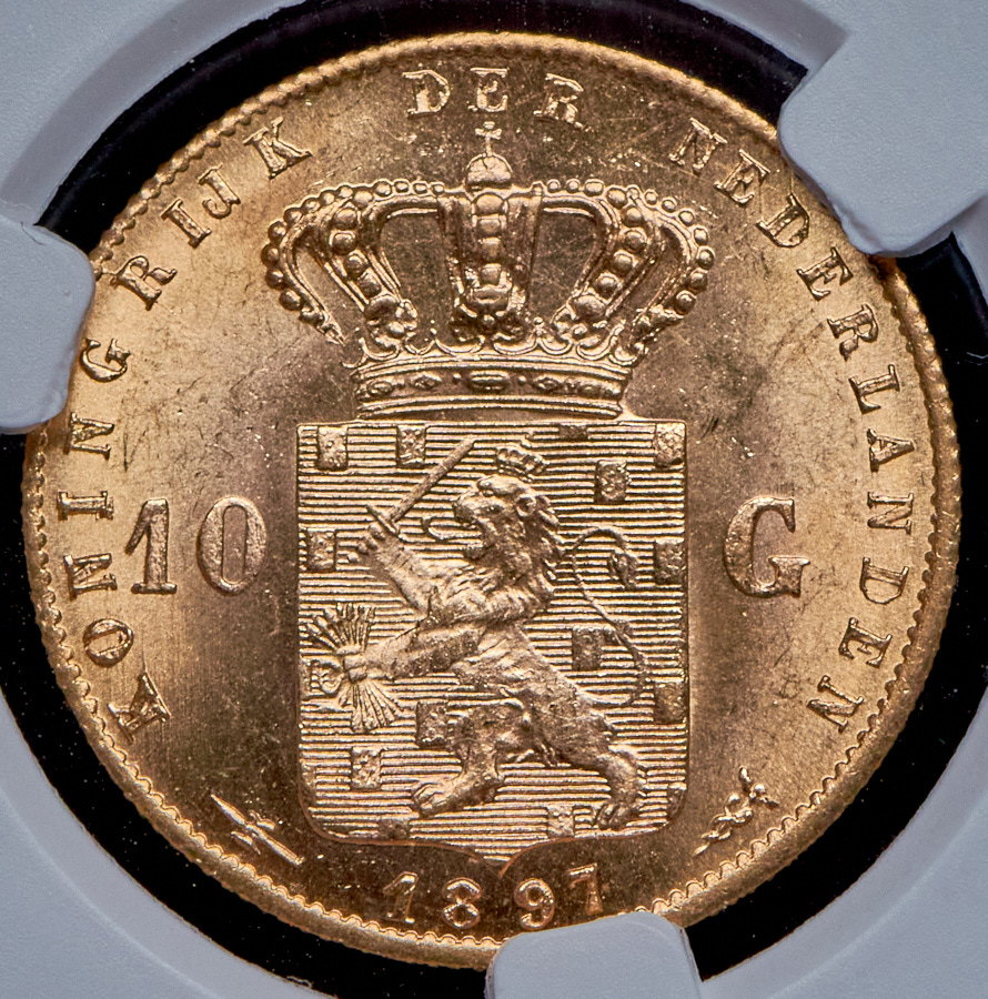 10 гульденов 1897 (Нидерланды) (в слабе)