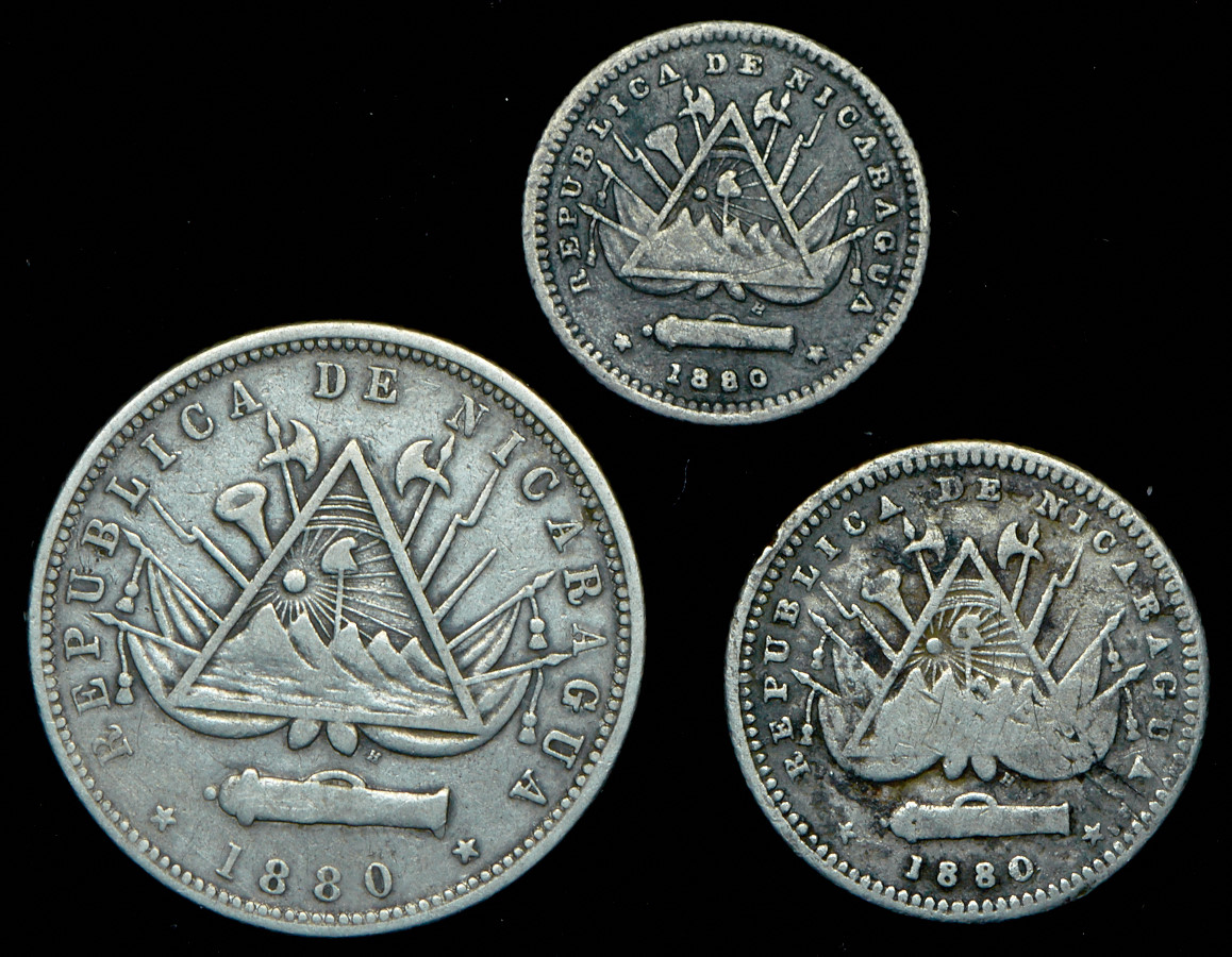 Набор из 3 сер. монет 1880 (Никарагуа)