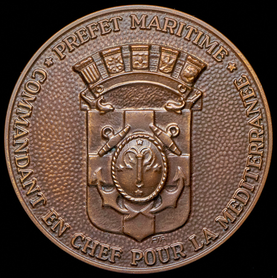 По кругу надпись (на латыни): «Prefet Maritime. Commandant en chef pour la Mediterranae».