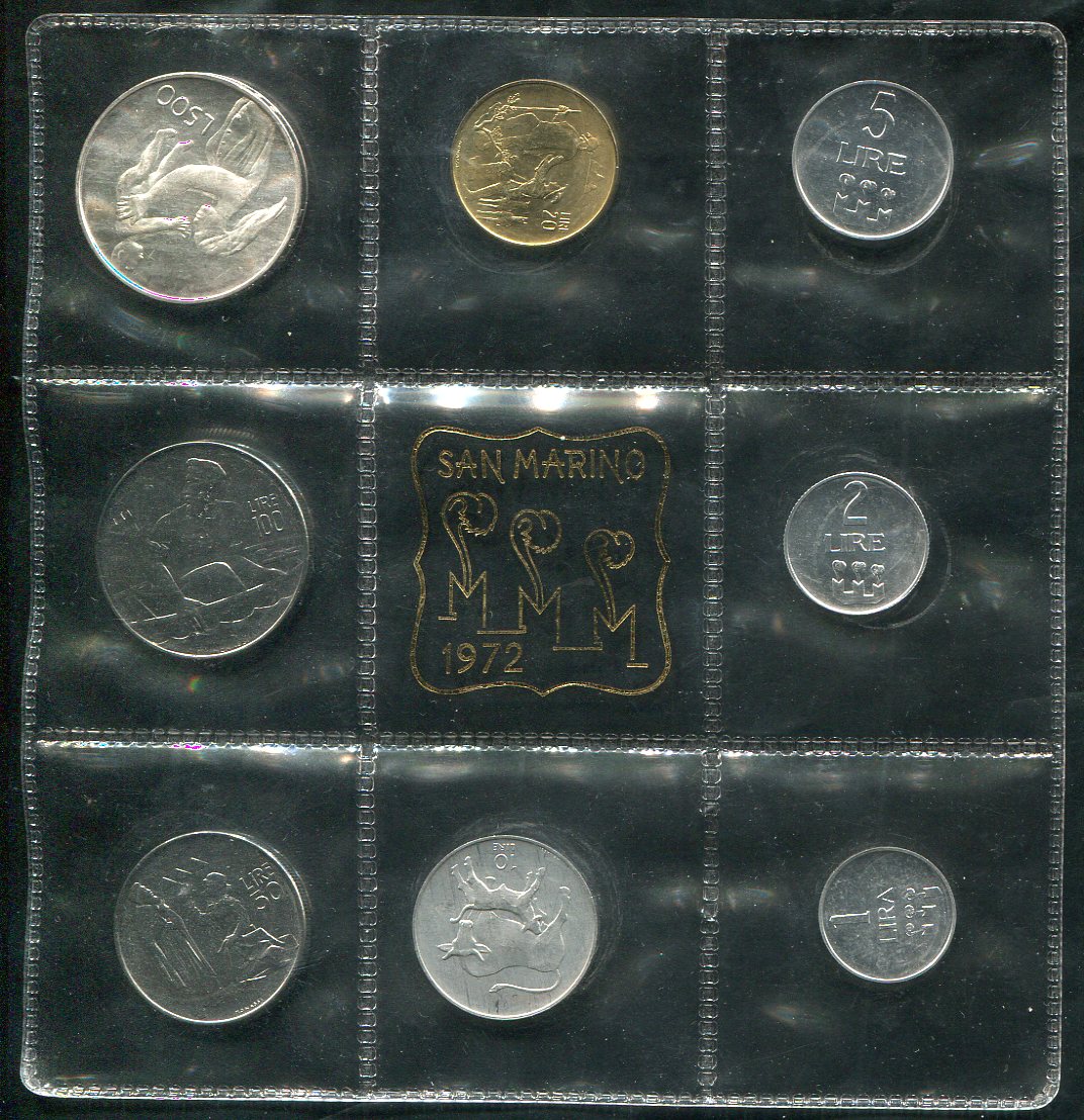Годовой набор из 8 монет 1972 (Сан-Марино) (в запайке)