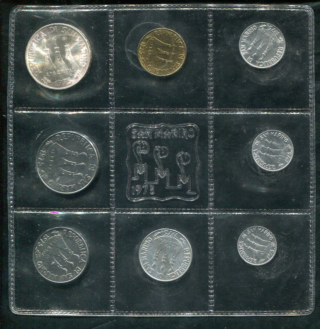 Годовой набор из 8 монет 1975 (Сан-Марино) (в запайке)