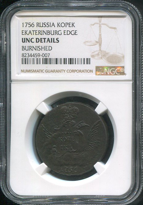 Копейка 1756 (в слабе)