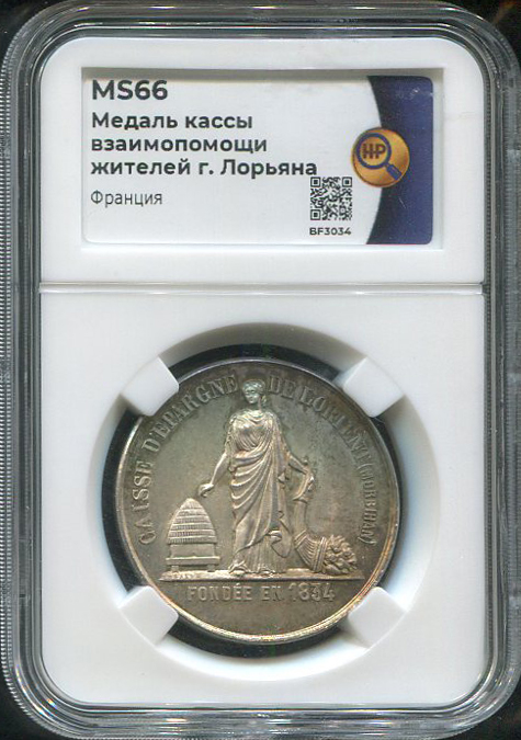 Медаль "Кассы взаимопомощи жителей г. Лорьяна" 1834 (Франция) (в слабе)