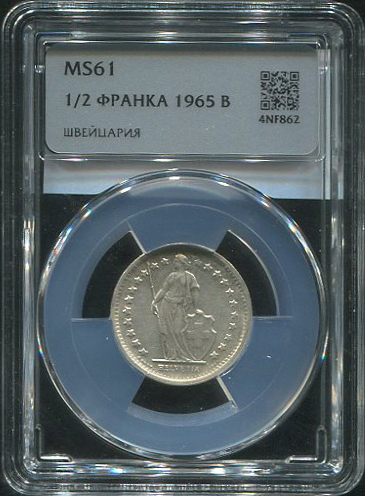 1/2 франка 1965 (Швейцария) (в слабе) B