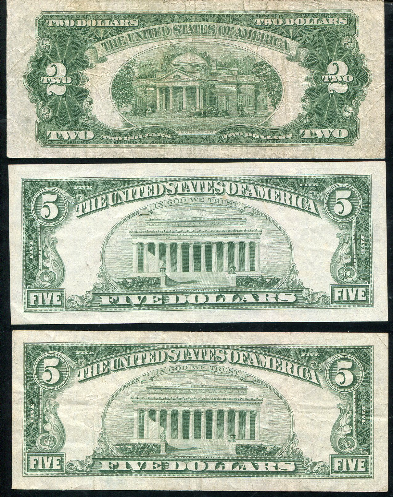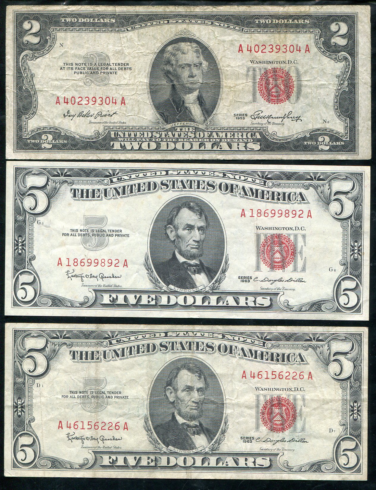 Набор из 3 банкнот 2, 5 долларов 1953, 1963 (США)