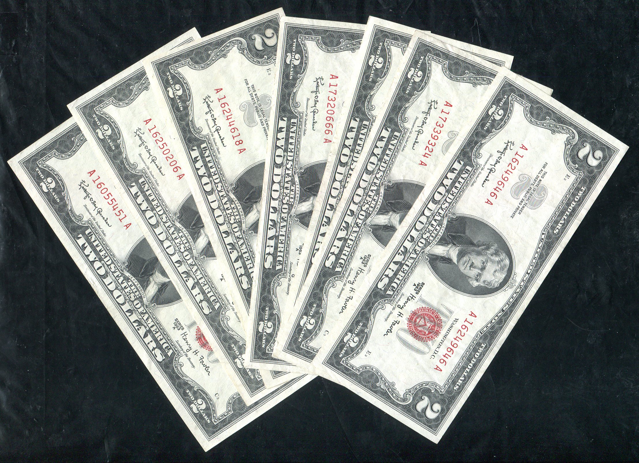 Набор из 7 банкнот 2 доллара 1963 (США)