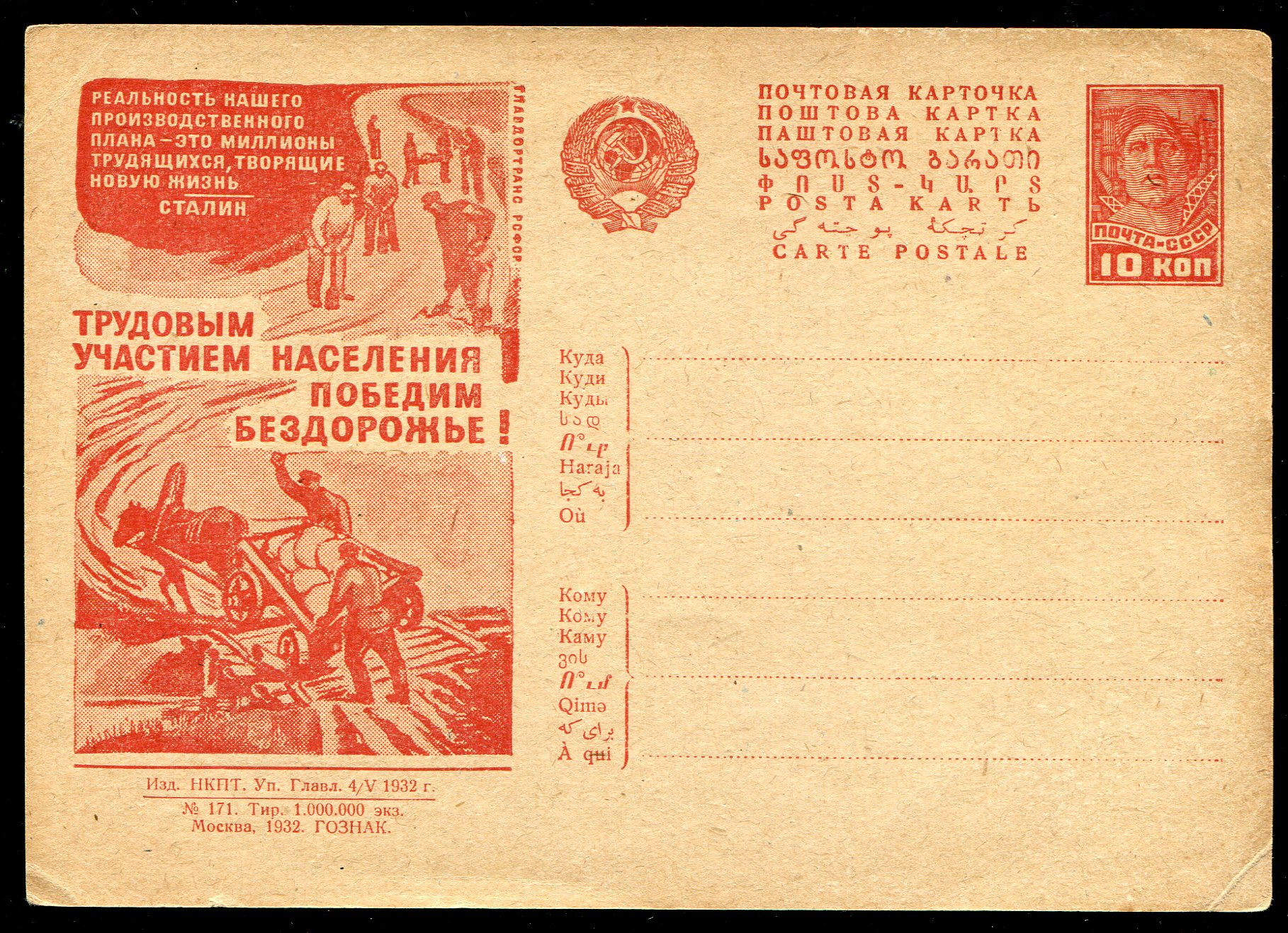 Открытка "Победим бездорожье!" 1932