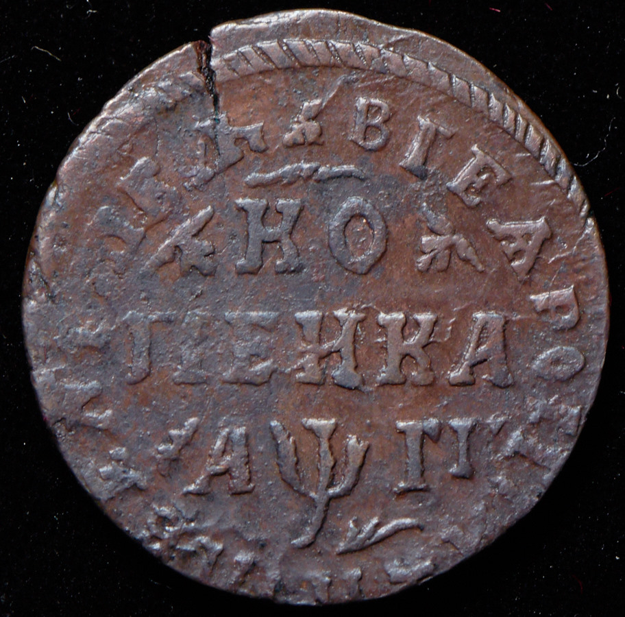 Кадашевский монетный двор. "КО" между акантовыми листьями. Пальмовая ветвь.