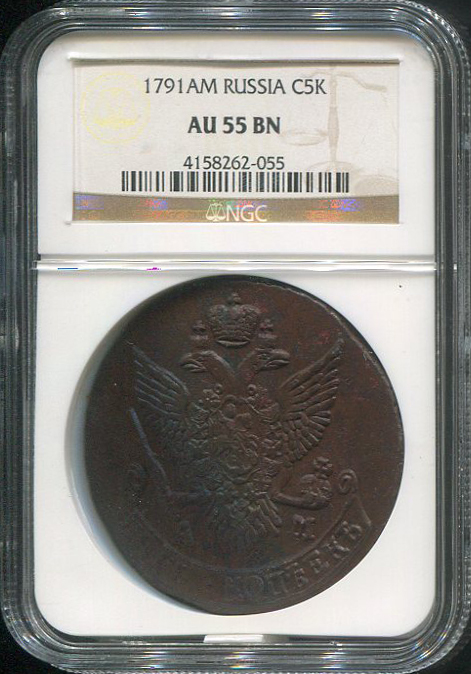 5 копеек 1791 (в слабе) АМ
