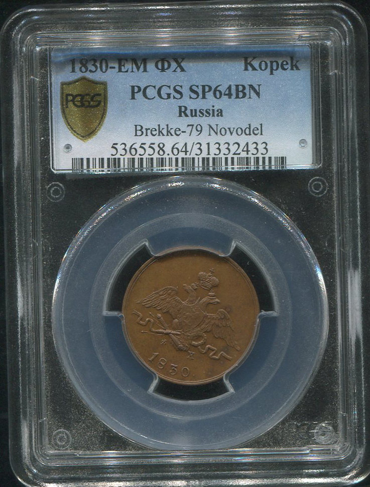 Копейка 1830. Новодел (в слабе) ЕМ-ФХ