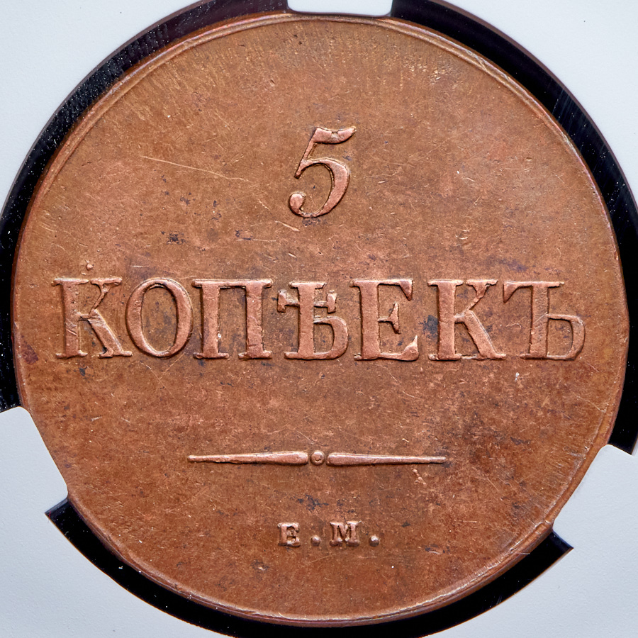 5 копеек 1835 (в слабе) ЕМ-ФХ