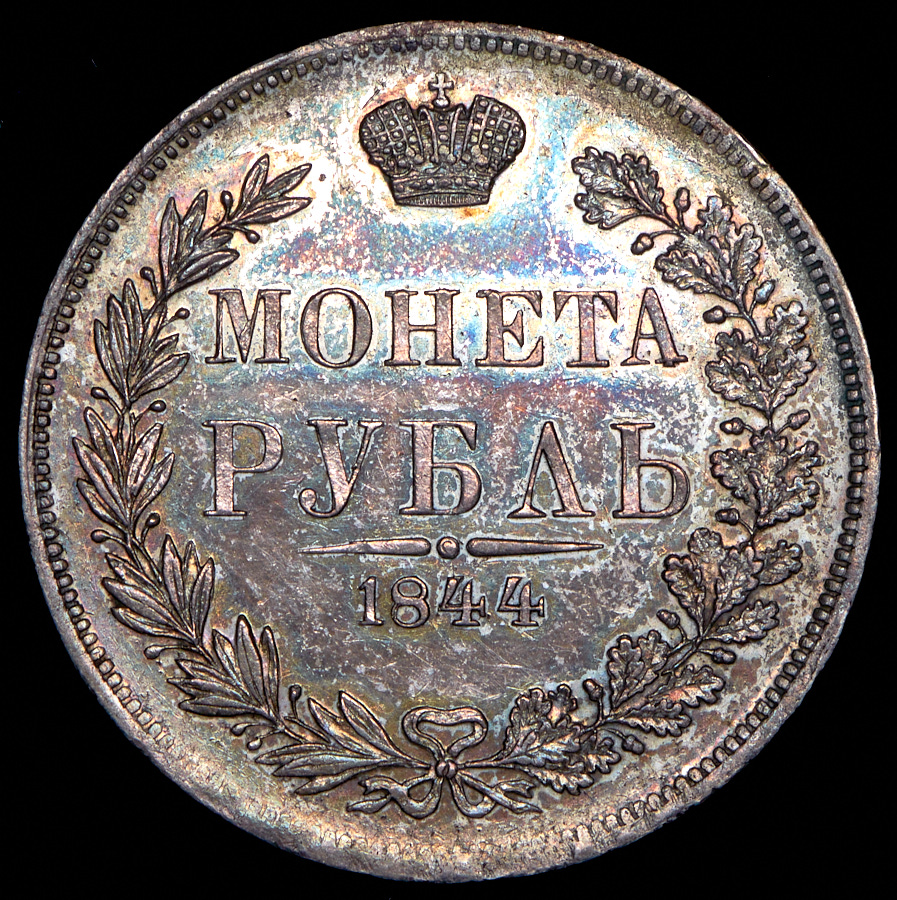 Незначительная периферийная непрочеканка. Легкая очаговая деградация поверхностей. Яркий блеск. Эффектная радужная патина.