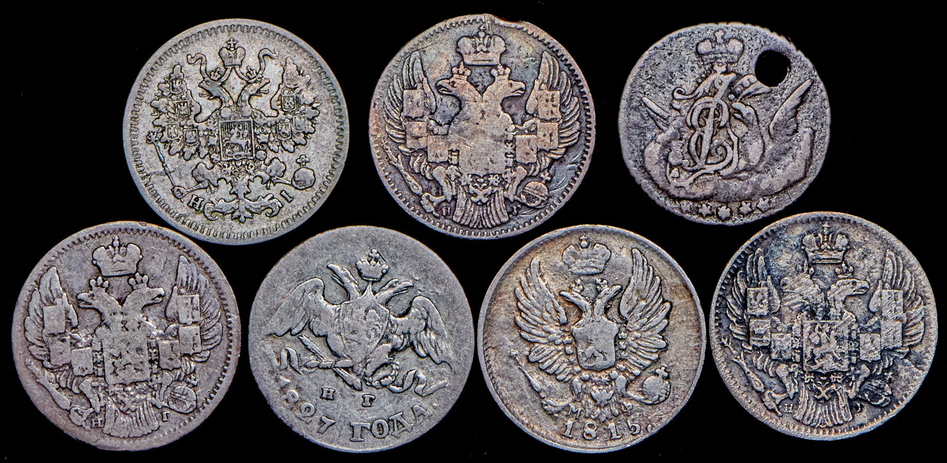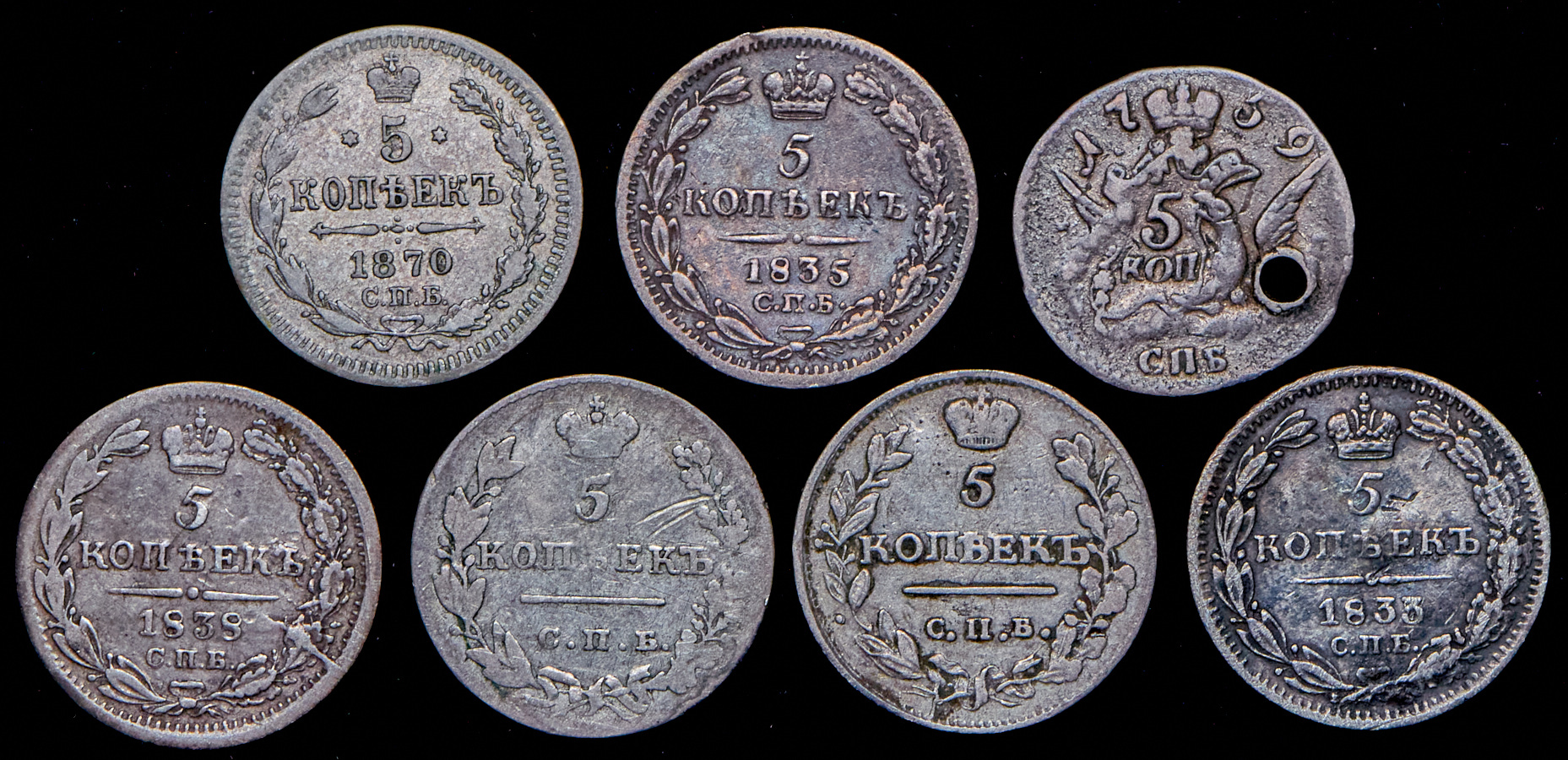 Набор из 7 сер. монет 5 копеек 1759-1870