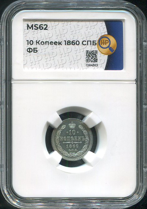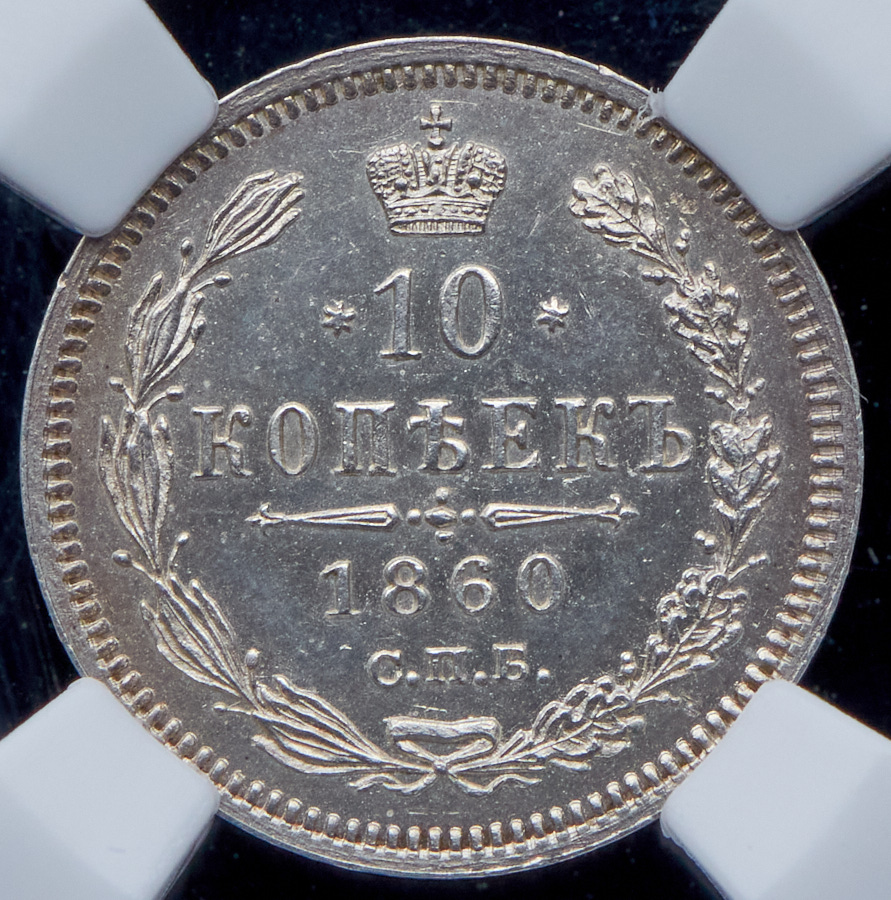 10 копеек 1860 (в слабе) СПБ-ФБ