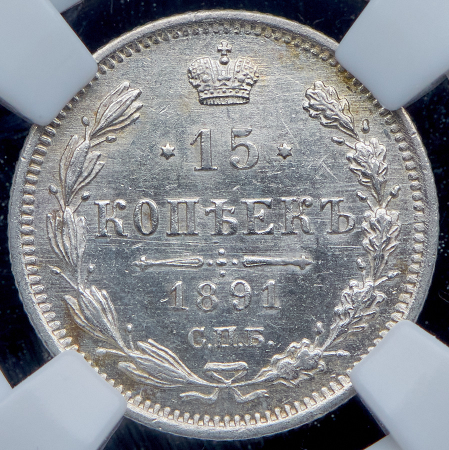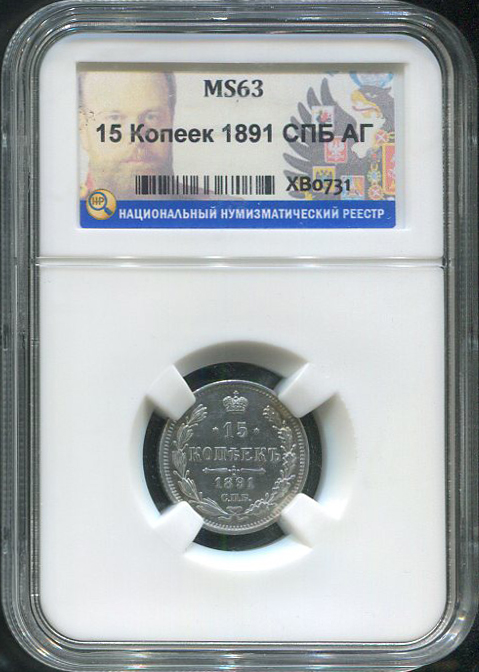 15 копеек 1891 (в слабе) СПБ-АГ