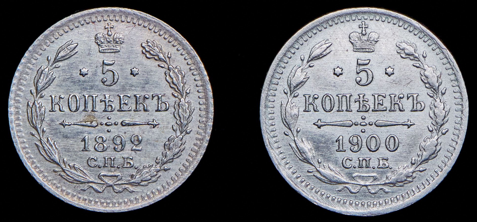 Набор из 2 сер. монет 5 копеек 1892, 1900