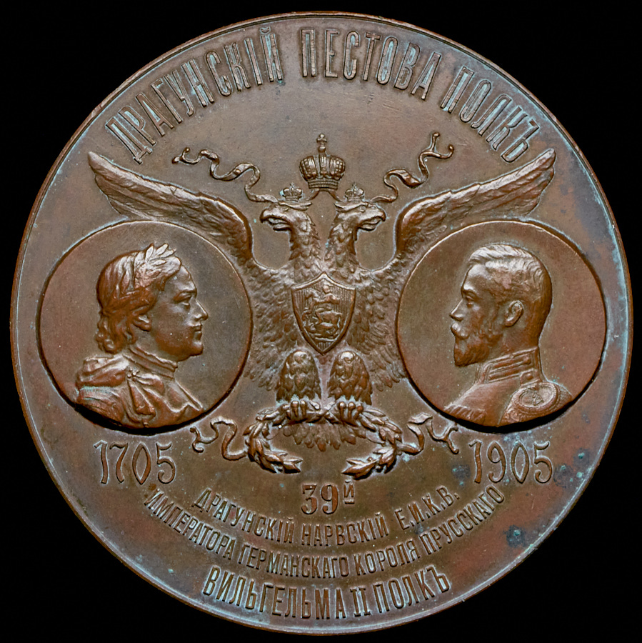 Медаль "200-летие 39-гo драгунского Hарвского Вильгельма II полка" 1905