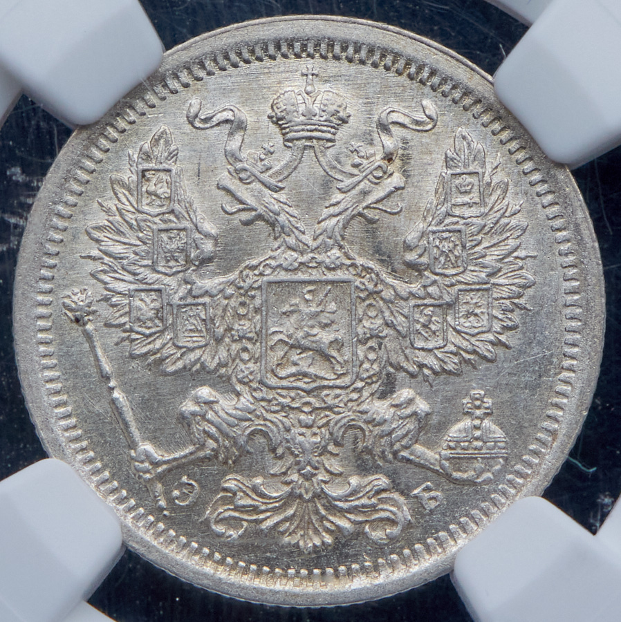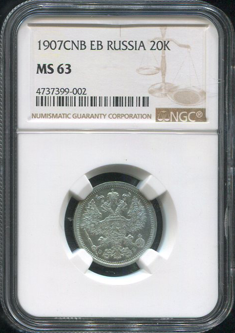 20 копеек 1907 (в слабе) СПБ-ЭБ