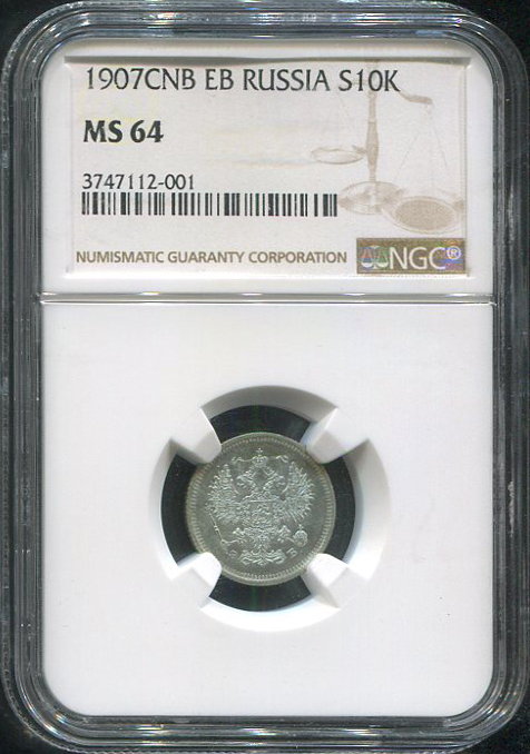 10 копеек 1907 (в слабе) СПБ-ЭБ