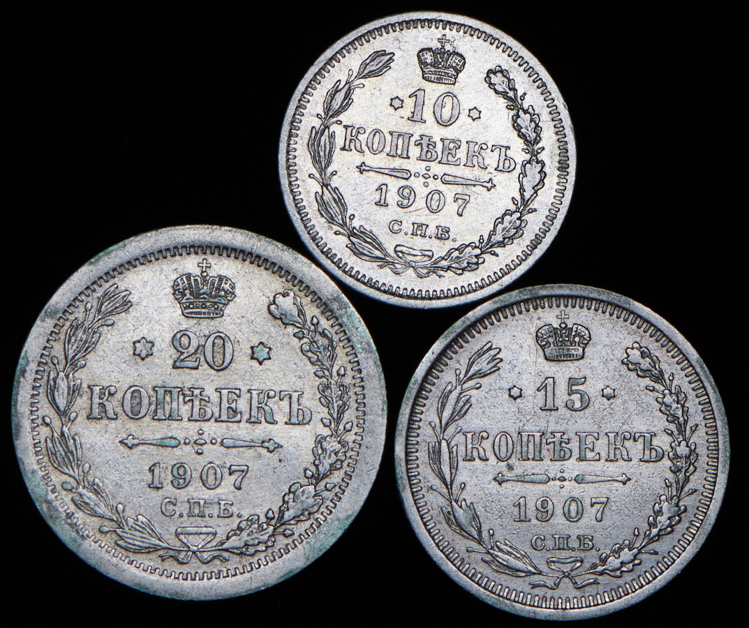 Набор из 3-х сер монет 10, 15, 20 копеек 1907 СПБ-ЭБ