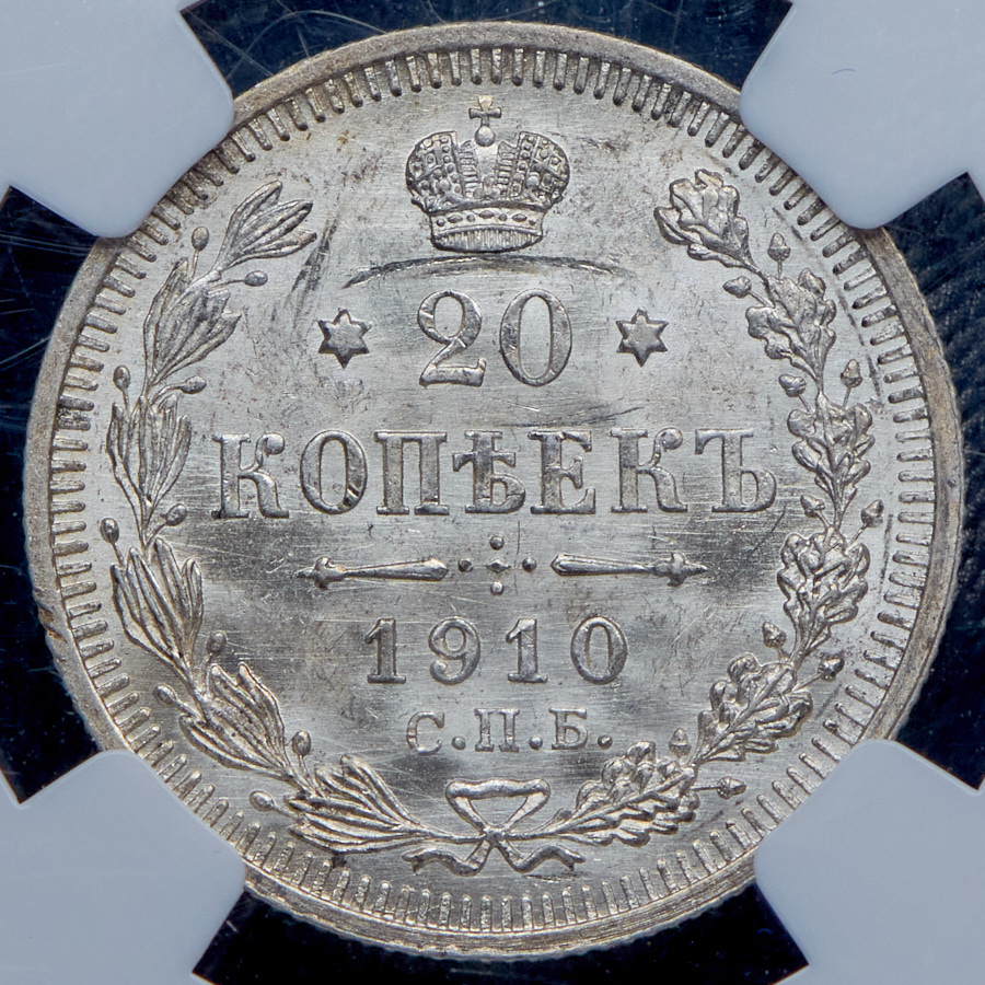 20 копеек 1910 (в слабе) СПБ-ЭБ