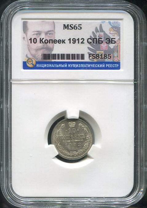 10 копеек 1912 (в слабе) СПБ-ЭБ