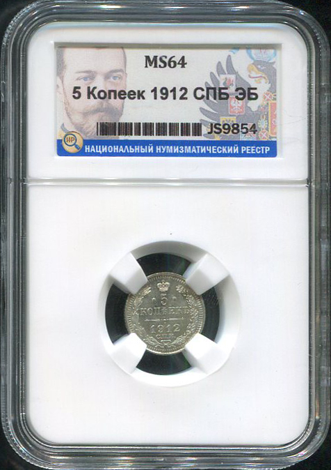 5 копеек 1912 (в слабе) СПБ-ЭБ