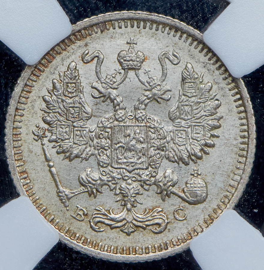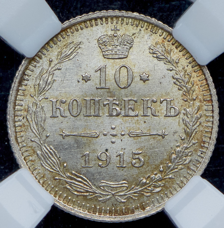 "После начала первой мировой войны, в которой противником России была Германия, русской столице в 1915 г. вместо "немецкого" названия - Санкт-Петербург - было присвоено русское - Петроград. В связи с этим со всех русских монет (разменных серебряных и медных) было снято обозначение Петербургского монетного двора - "СПБ" (т.е. "Санкт-Петербург"), однако другого обозначения до 1917 г. так и не было установлено."
