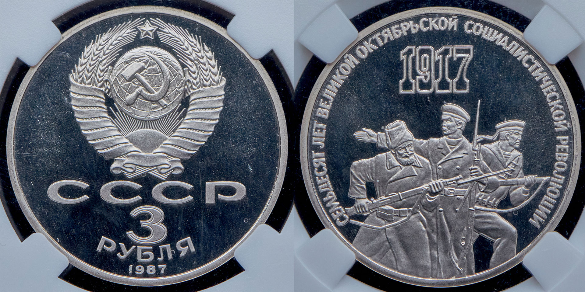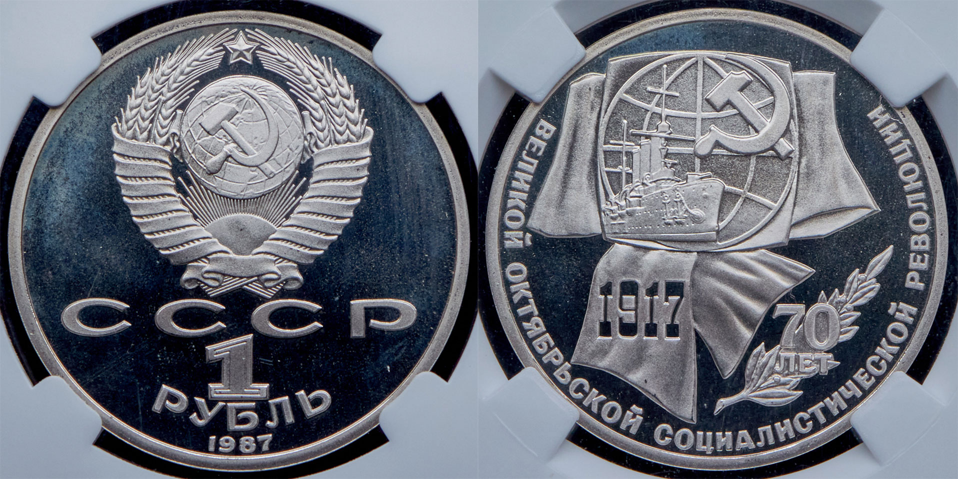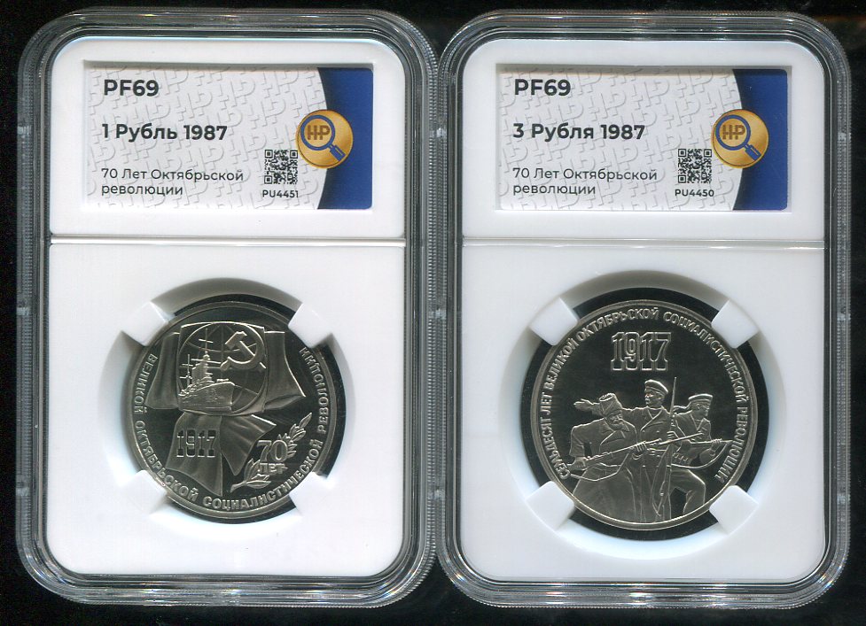 Набор из 2 монет 1987 "70 лет великой Октябрьской социалистической революции" (в слабах)