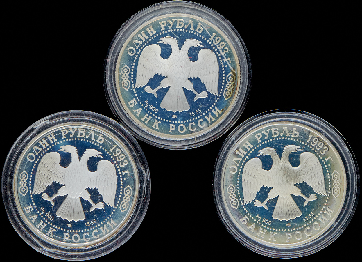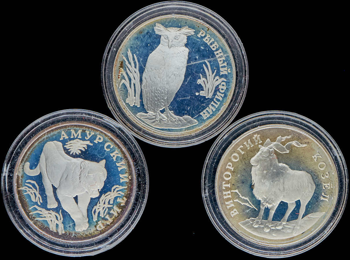 Набор из 3 сер. монет Рубль 1993 "Красная книга" ЛМД