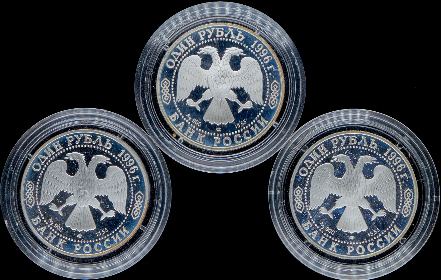 Набор из 3 сер. монет Рубль 1996 "Красная книга" ЛМД