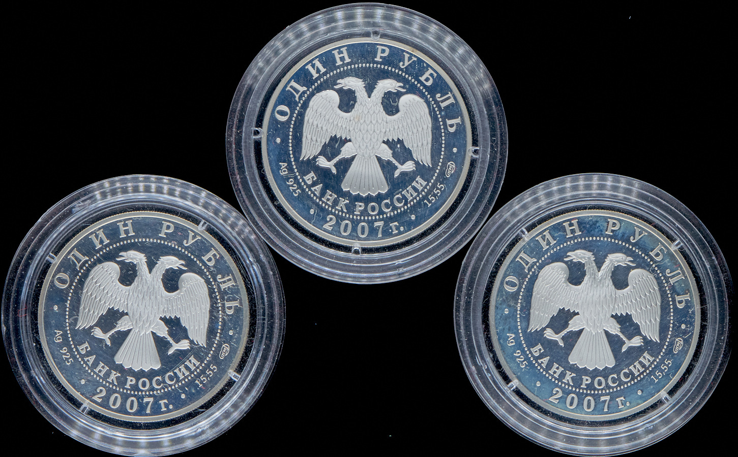 Набор из 3 сер. монет Рубль 2007 "Красная книга" СПМД