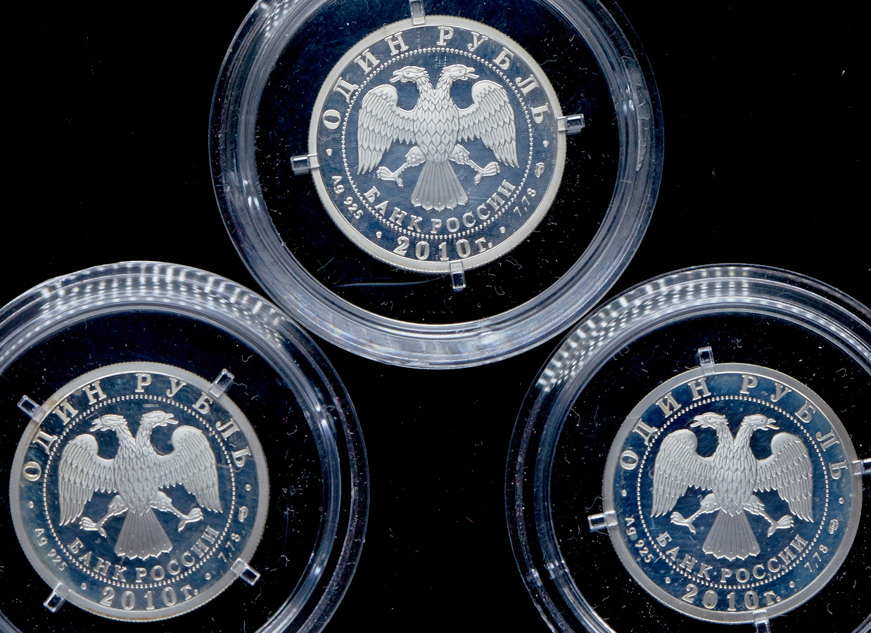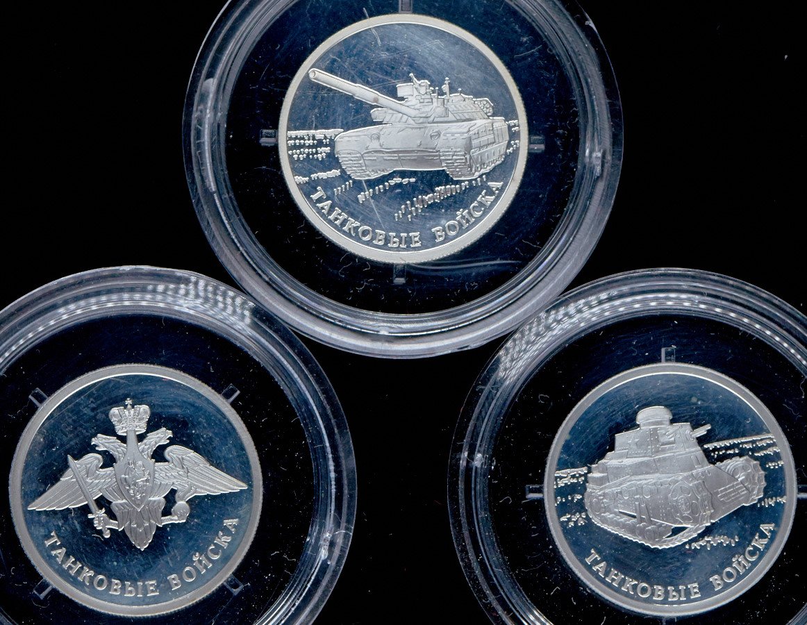Набор из 3 сер. монет Рубль 2010 "Танковые войска" СПМД