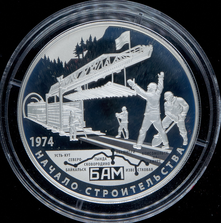 25 рублей 2014 "40-летие начала строительства Байкало-Амурской магистрали" СПМД