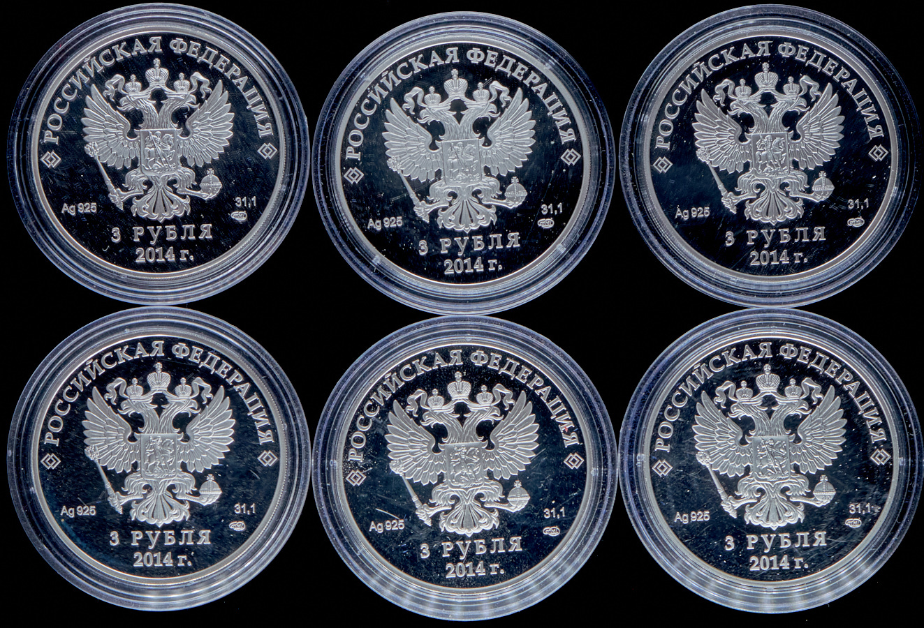 Комплект монет 3 рубля "Олимпиада 2014 в Сочи" (в п/у)